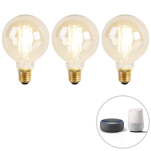 Tauchen Sie ein in eine Welt voller Atmosphäre und intelligenter Lichtsteuerung mit dem Calex Set aus drei smarten E27 LED-Lampen. Diese wunderschönen G95 Goldline Lampen vereinen nostalgisches Design mit modernster Technologie und verwandeln Ihr Zuhause in eine Wohlfühloase. Genießen Sie warmes, dimmbares Licht, das sich Ihren Bedürfnissen anpasst und für jeden Anlass die perfekte Stimmung schafft.