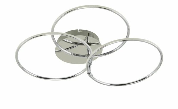 Die KHG LED-Deckenleuchte vereint Funktionalität mit ästhetischem Anspruch. Die drei Leuchtquellen sind in stilvollen Ringen angeordnet, die ein harmonisches und gleichmäßiges Licht verteilen. Das chromfarbene Gehäuse sorgt für einen modernen Look, während die silbernen Ringe einen subtilen, aber wirkungsvollen Akzent setzen. Die Leuchte ist ideal für Wohnzimmer, Schlafzimmer, Esszimmer oder auch für Büros und Empfangsbereiche, in denen ein stilvolles Ambiente gefragt ist.