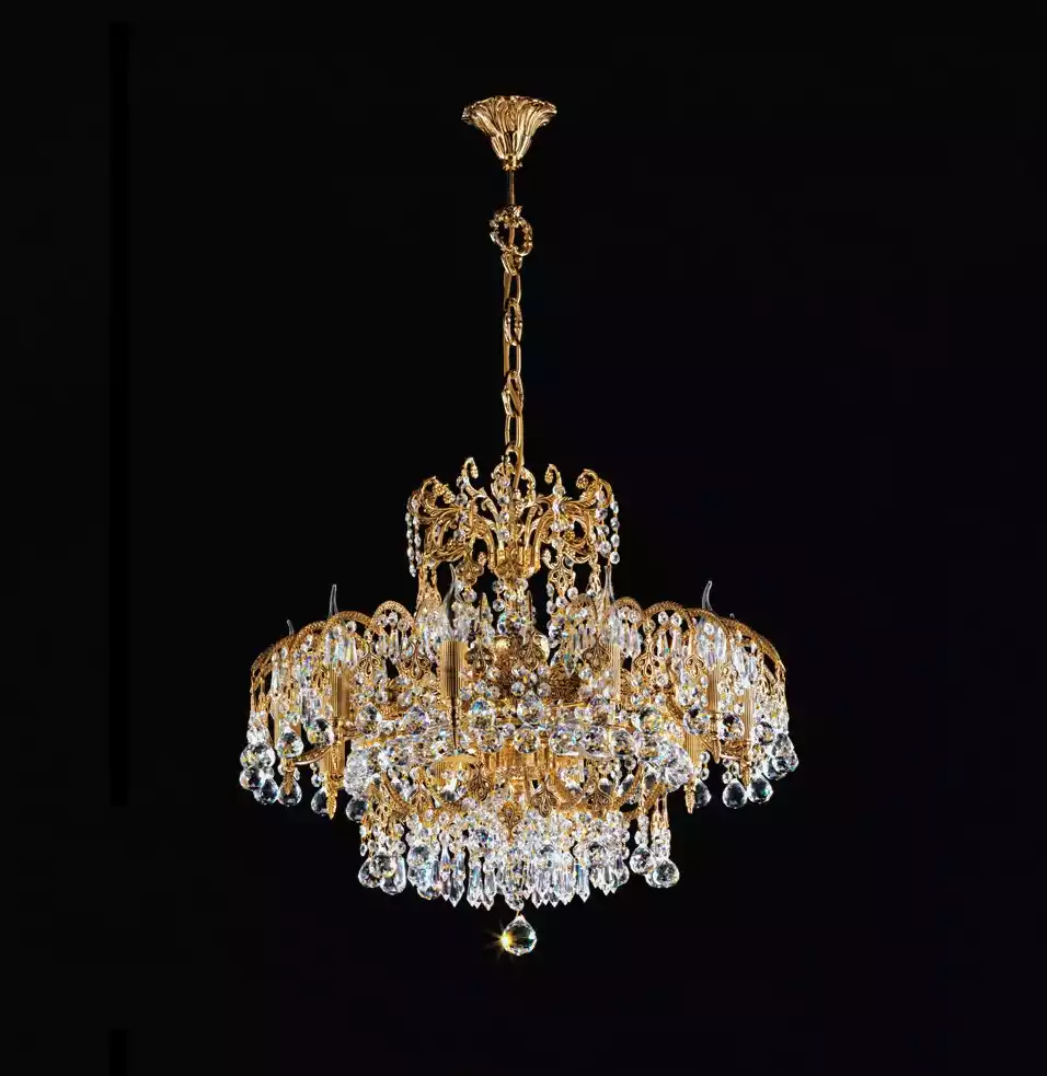 - Klassische Kronleuchter: Opulent, prunkvoll und mit vielen Verzierungen. Charakteristisch sind geschwungene Arme, funkelnde Kristalle und edle Metalle wie Gold oder Silber. Passen perfekt zu traditionellen Einrichtungsstilen und verleihen jedem Raum einen Hauch von Luxus.