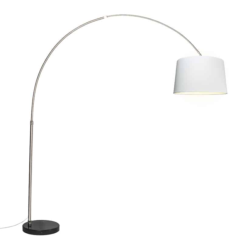 QAZQA Bogenleuchte Stahl Stoffschirm weiß 45 cm – XXL: Eleganz und Weite für Ihr Zuhause