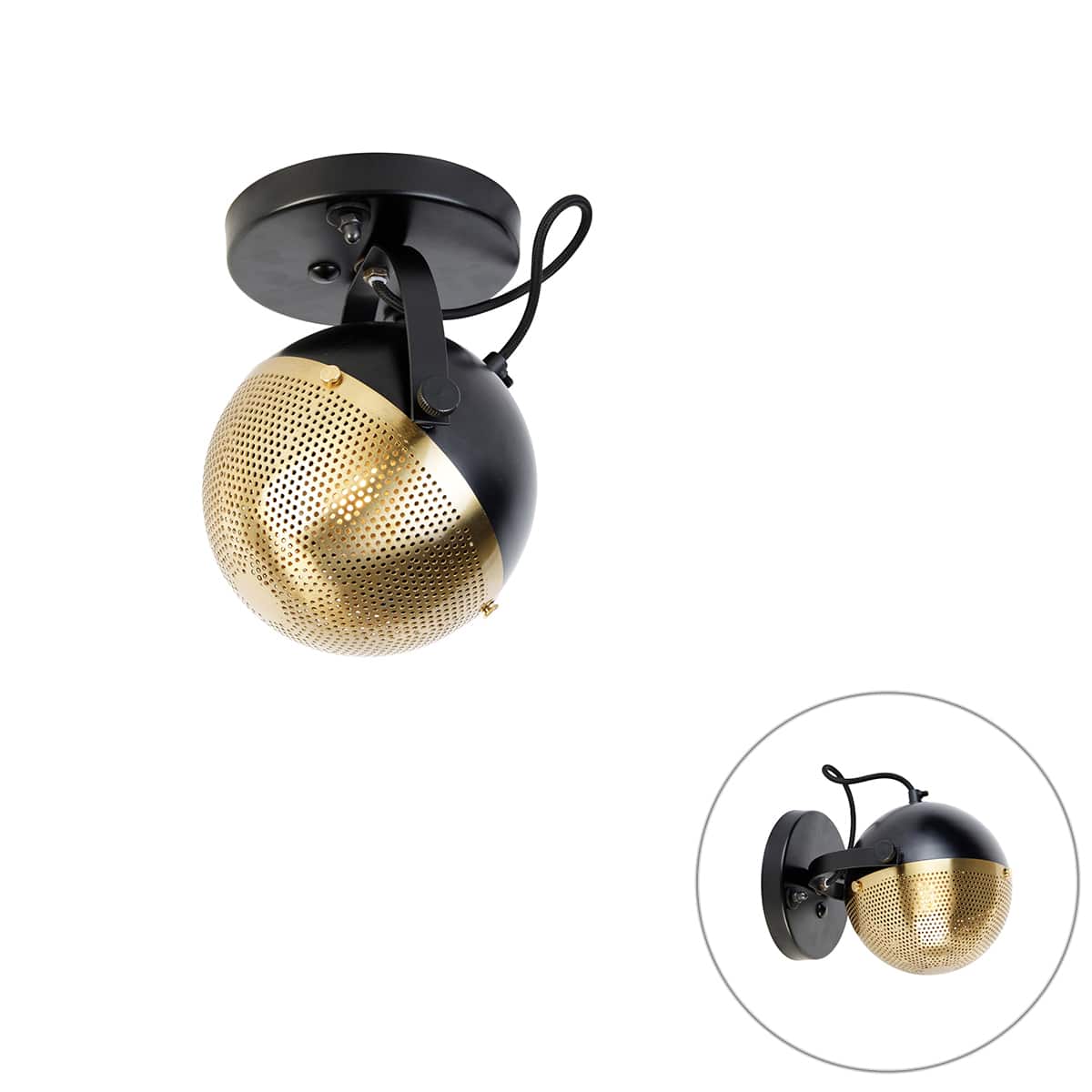 QAZQA Industrieller Spot schwarz mit Messing – Haicha: Dein Licht, Dein Stil, Deine Geschichte