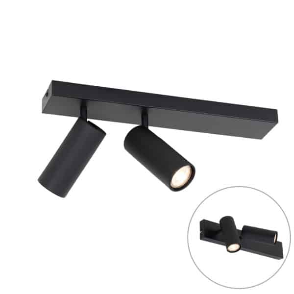 QAZQA Moderner Deckenstrahler schwarz 2-flammig verstellbar – Renna