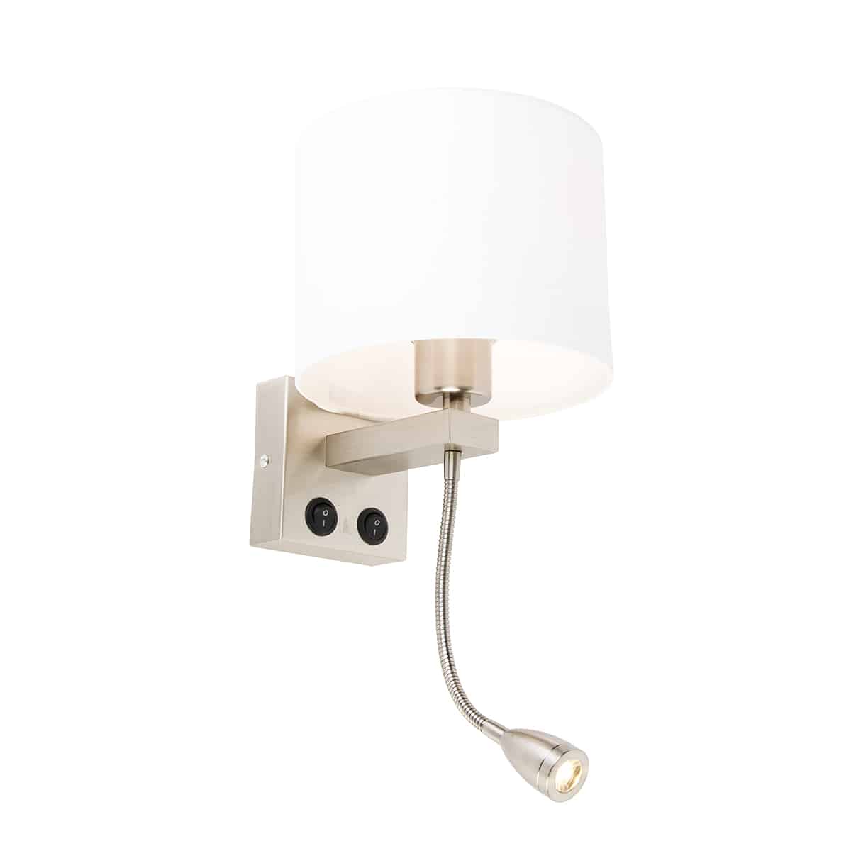 Die QAZQA Wandleuchte Brescia Combi ist mehr als nur eine Lichtquelle – sie ist ein Statement. Mit ihrem eleganten Design, der Kombination aus Stahl und Weiß und dem flexiblen Arm bringt sie Licht genau dorthin, wo du es brauchst, und verleiht deinem Zuhause gleichzeitig eine besondere Note.